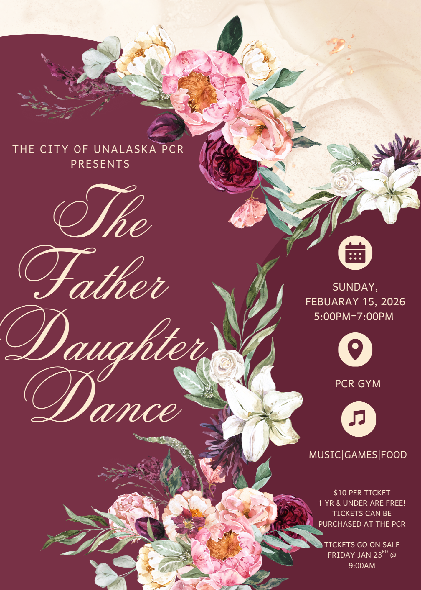 Join us for an unforgettable evening celebrating the special bond between fathers and daughters. This elegant event will feature soft music, sweet treats, and cherished moments on the dance floor.